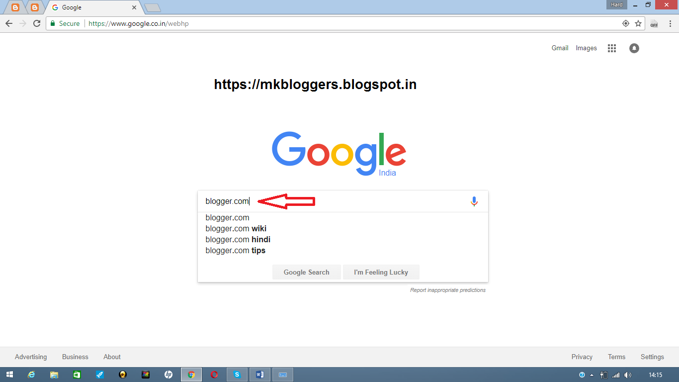 Dosto sabse pehle hume apna browser open karna hai or fir usme google.com kholna hai jab google khul jaye to uske search bar main hume type karna hain Blogger.com (Image mention Below) or fir search karna hai..