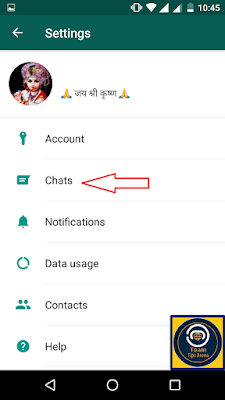 Dosto "settings" pe click karne ke baad hume "chats" wale option click karna hai (image mention below).